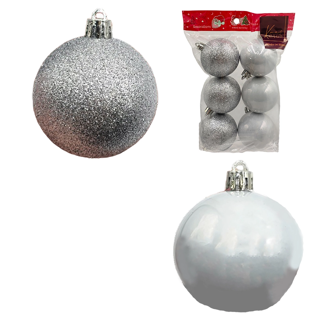 Елочная игрушка "Шар" (пластик), D8 см, набор (6 шт), в асс. Серебряный