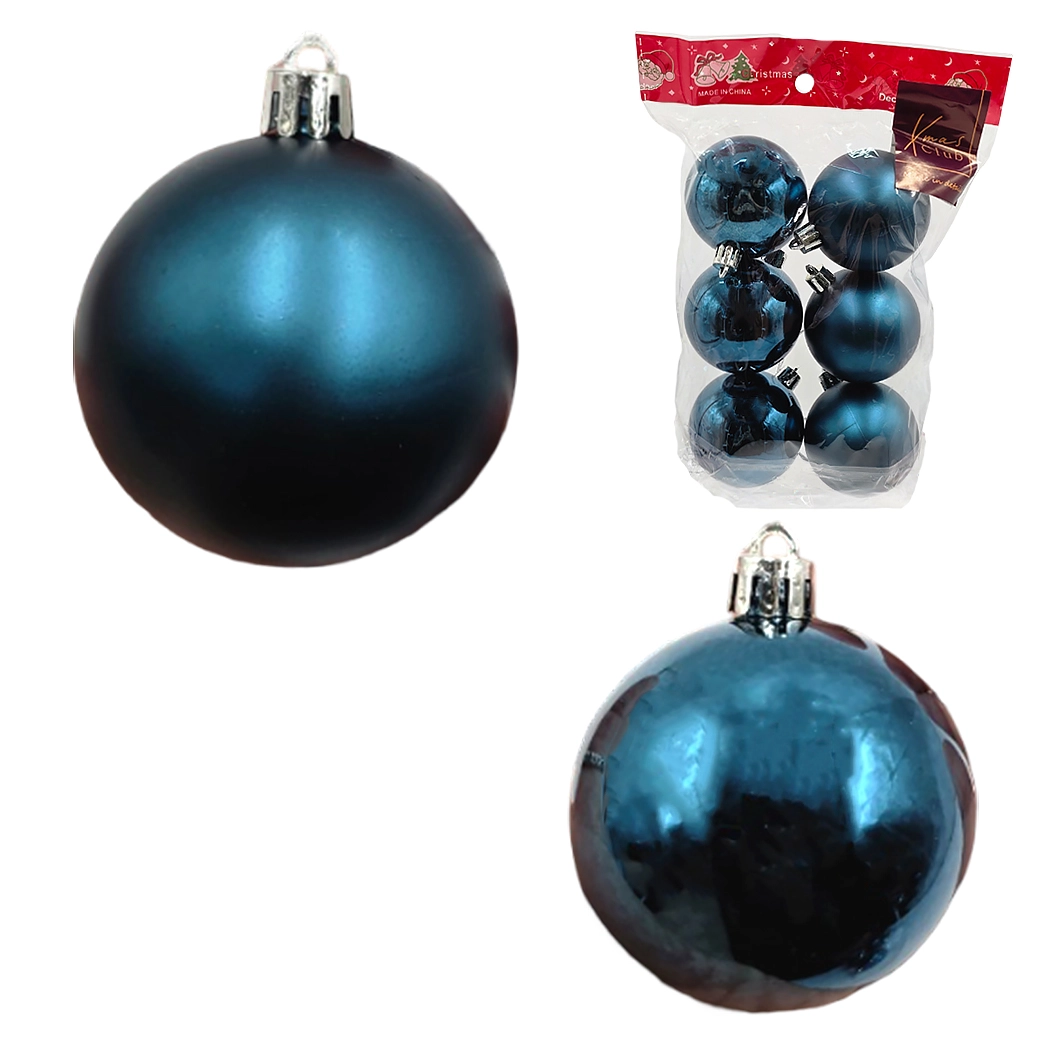 Елочная игрушка "Шар" (пластик), D8 см, набор (6 шт), в асс. Синий
