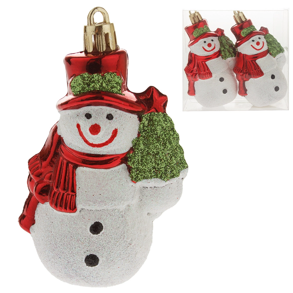 Елочная игрушка "Снеговик" (пластик), H9 см, набор (2 шт) Красный