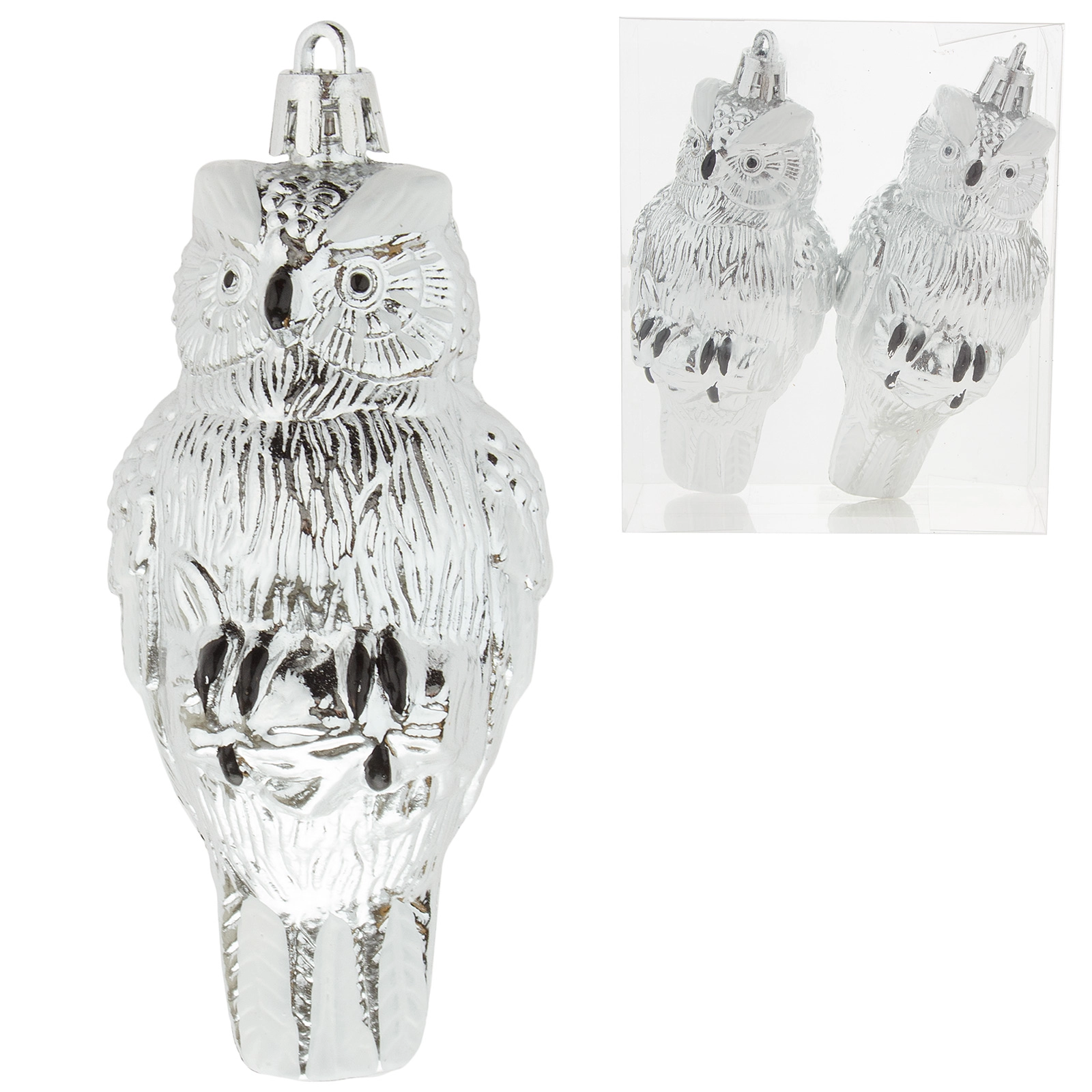 Елочная игрушка "Сова" (пластик), H10 см, набор (2 шт) Серебряный