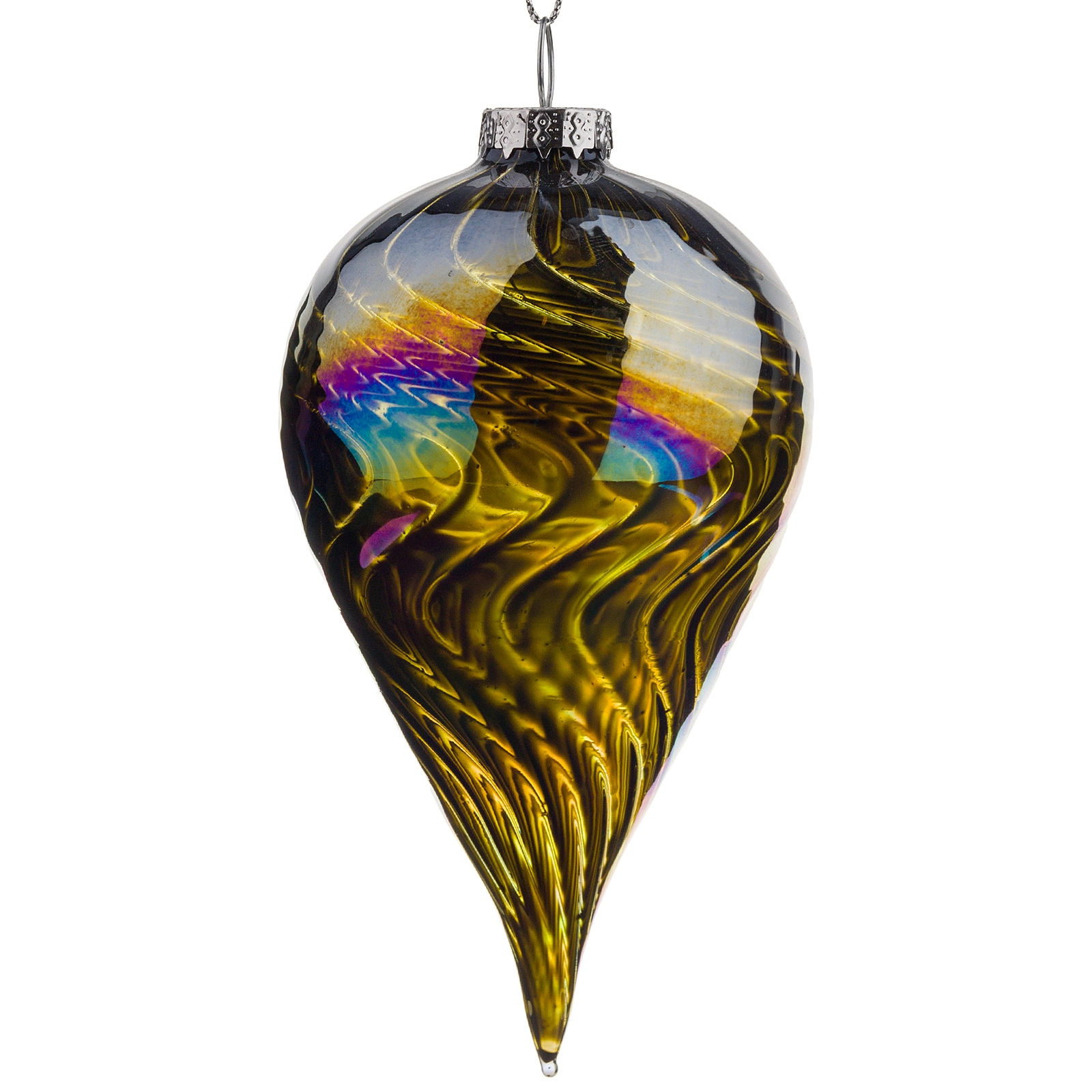 Елочная игрушка "Капля" (стекло), 6xH12 см Золотой-черный