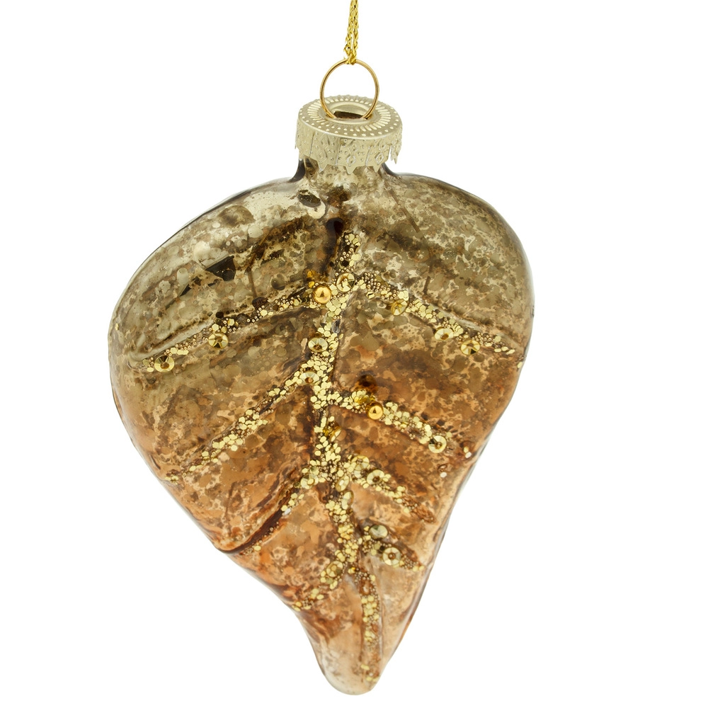 Елочная игрушка "Лист" (стекло), 7хН11,5 см Золотой