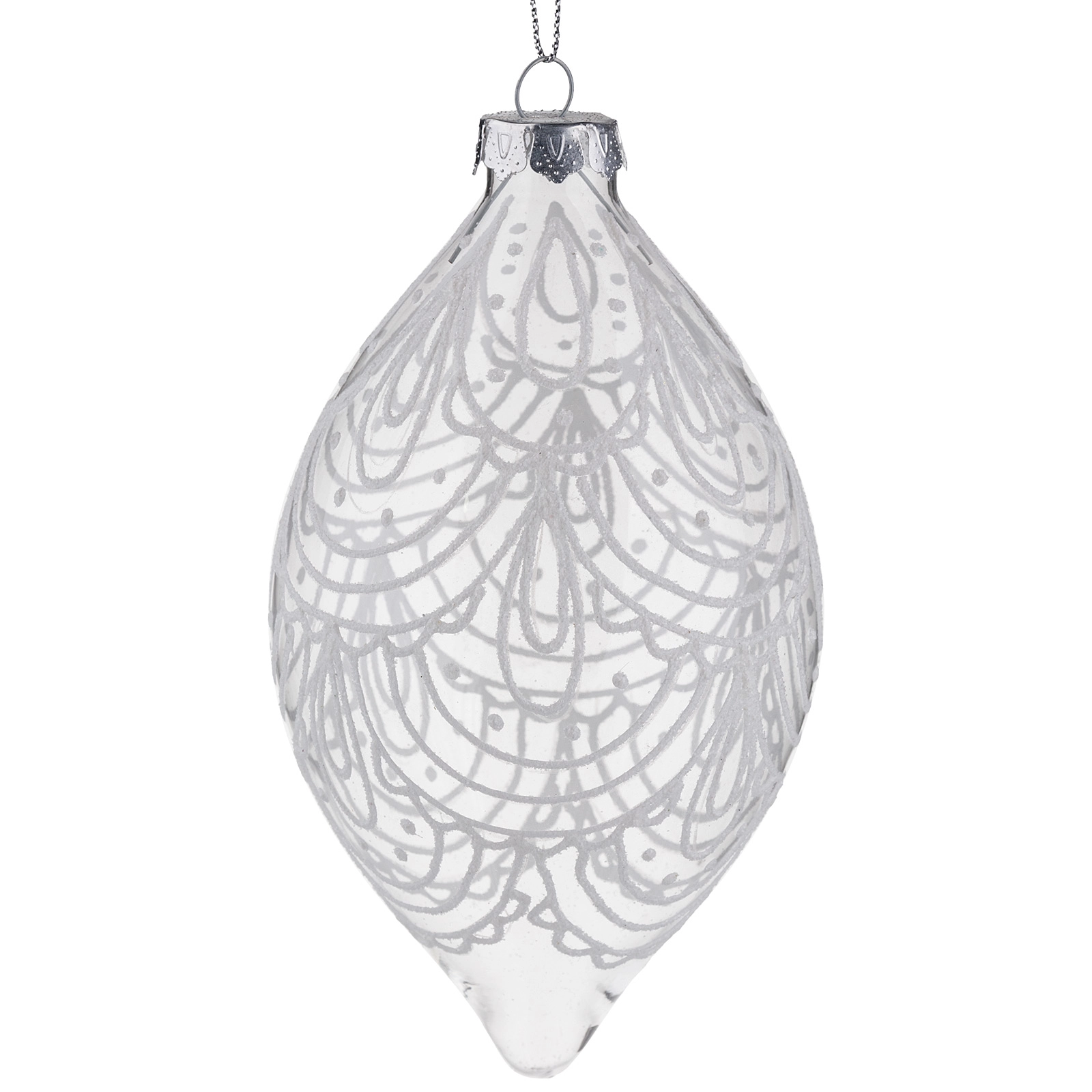 Елочная игрушка "Олива" (стекло), D8xH14 см Белый-серебряный