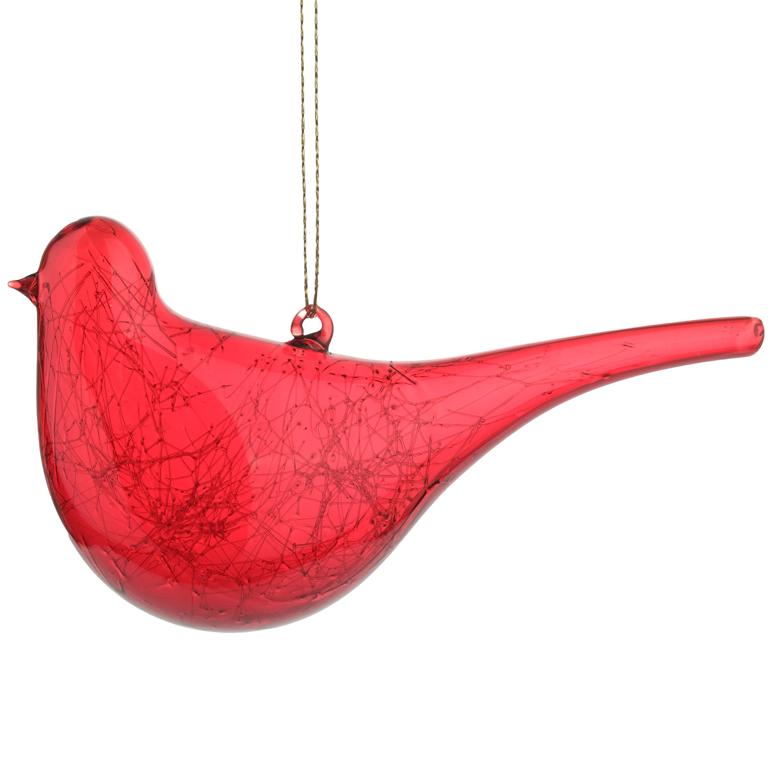 Елочная игрушка "Птичка" (стекло), 15x5xH5 см Красный