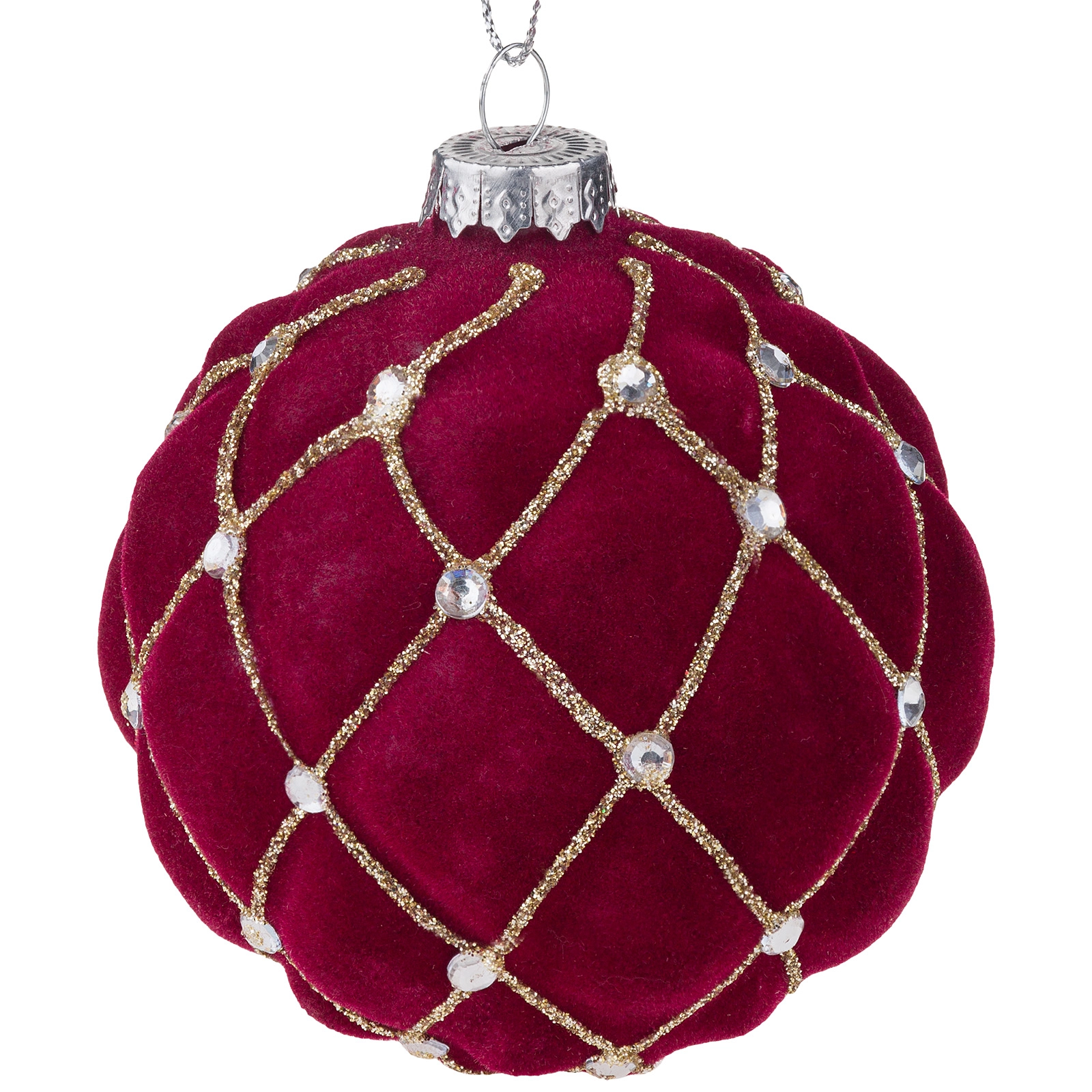 Елочная игрушка "Шар" (барxат, стекло), D8 см Красный