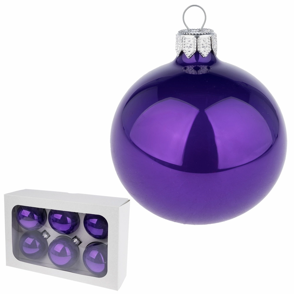 Елочная игрушка "Шар глянец" (стекло), D7 см, набор (6 шт) Фиолетовый