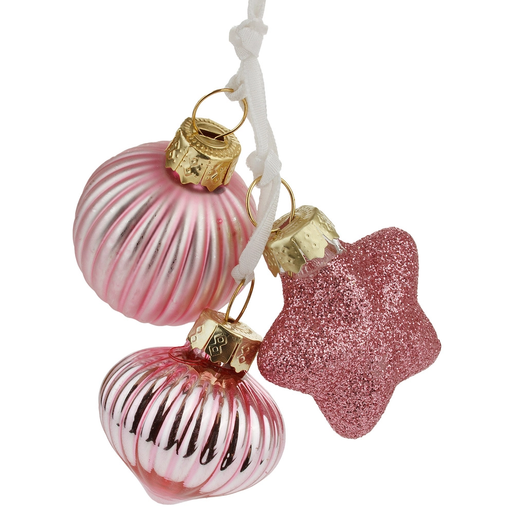 Елочная игрушка "Шар, луковка, звезда в связке" (стекло), D3,5 см Розовый