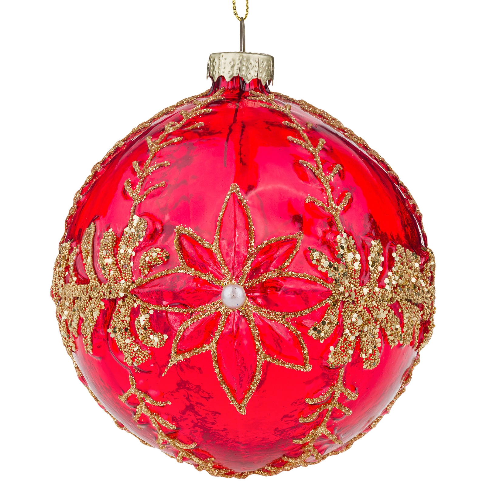 Елочная игрушка "Шар" (стекло), D10 см Золотой-красный