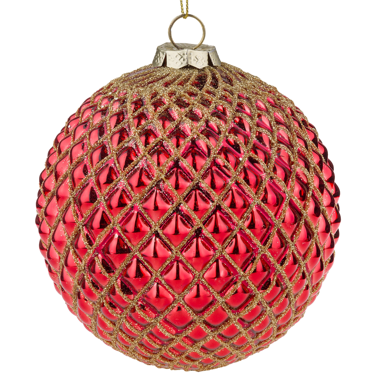 Елочная игрушка "Шар" (стекло), D12 см Золотой-красный