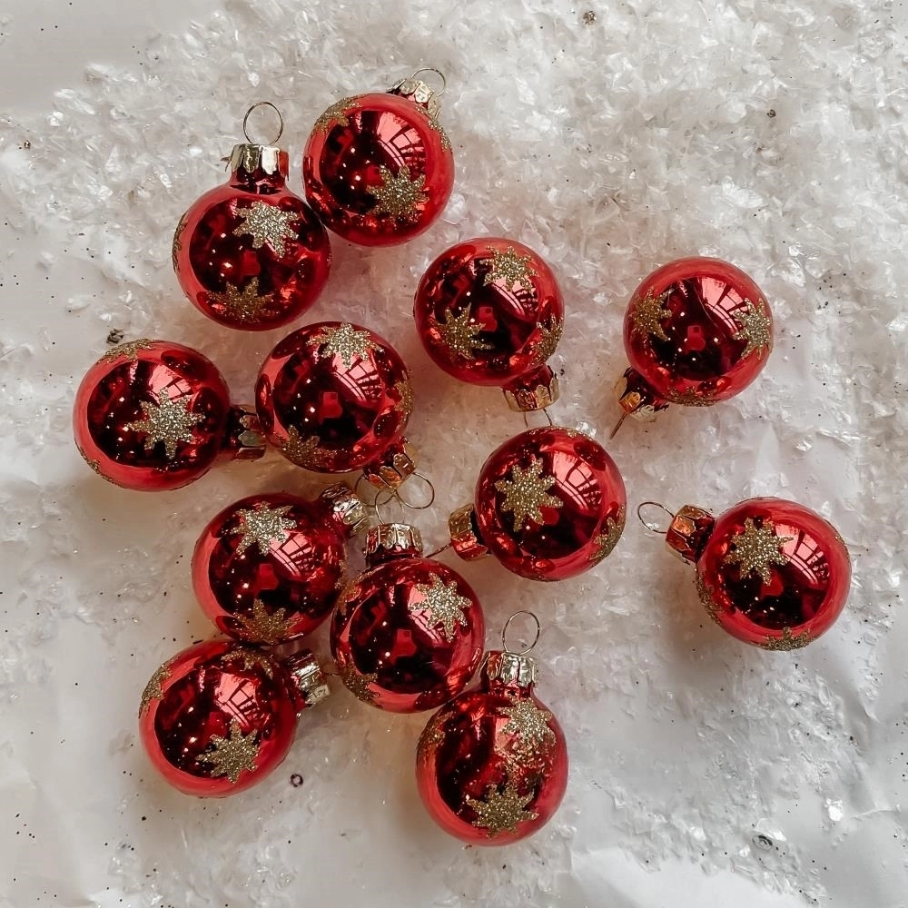 Елочная игрушка "Шар" (стекло), D3 см, набор (12 шт) Красный