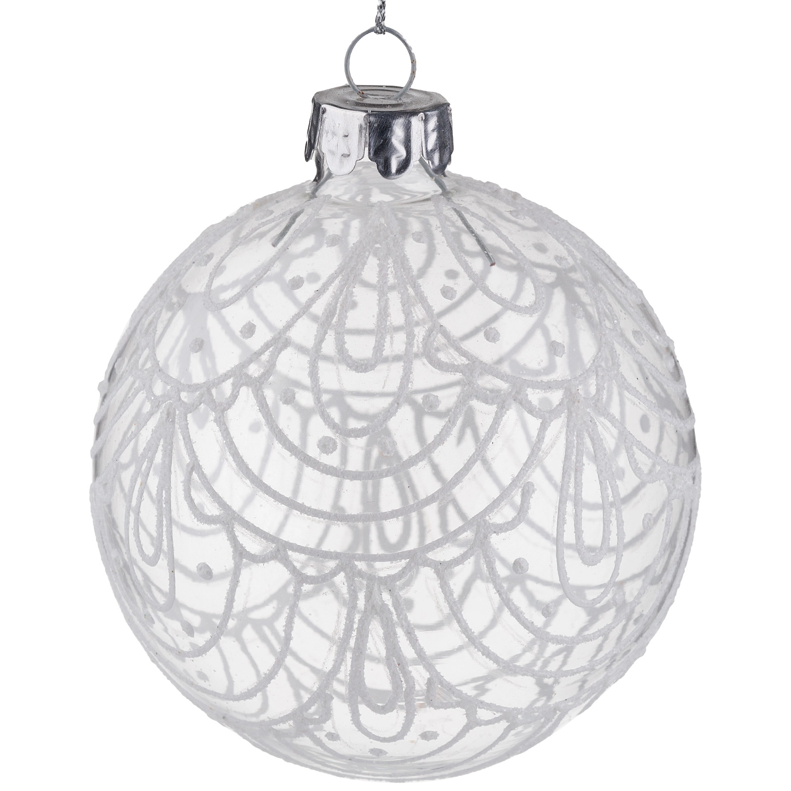 Елочная игрушка "Шар" (стекло), D8 см Белый-серебряный