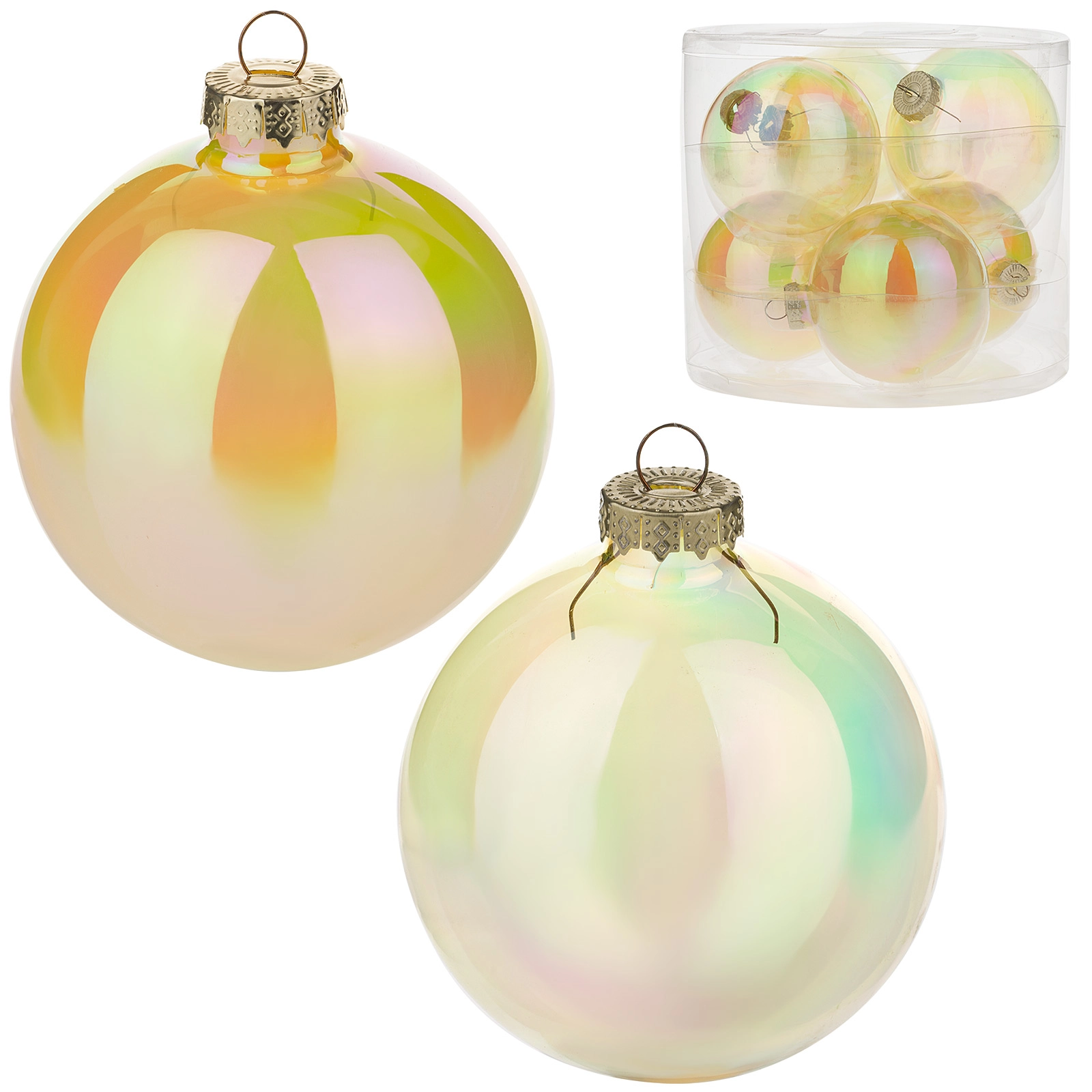Елочная игрушка "Шар" (стекло), D8 см, набор (6 шт) Светло-желтый