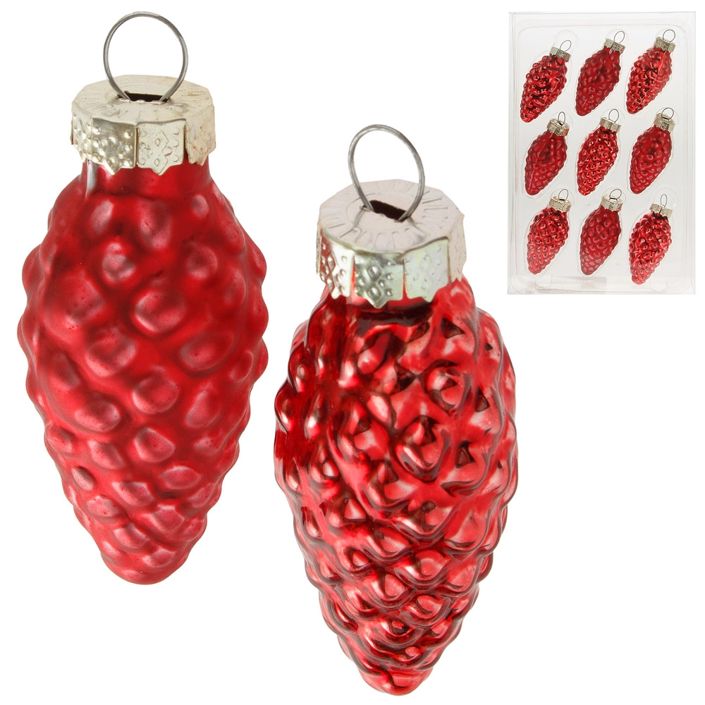 Елочная игрушка "Шишка" (стекло), 4,5 см, набор (9 шт) Красный