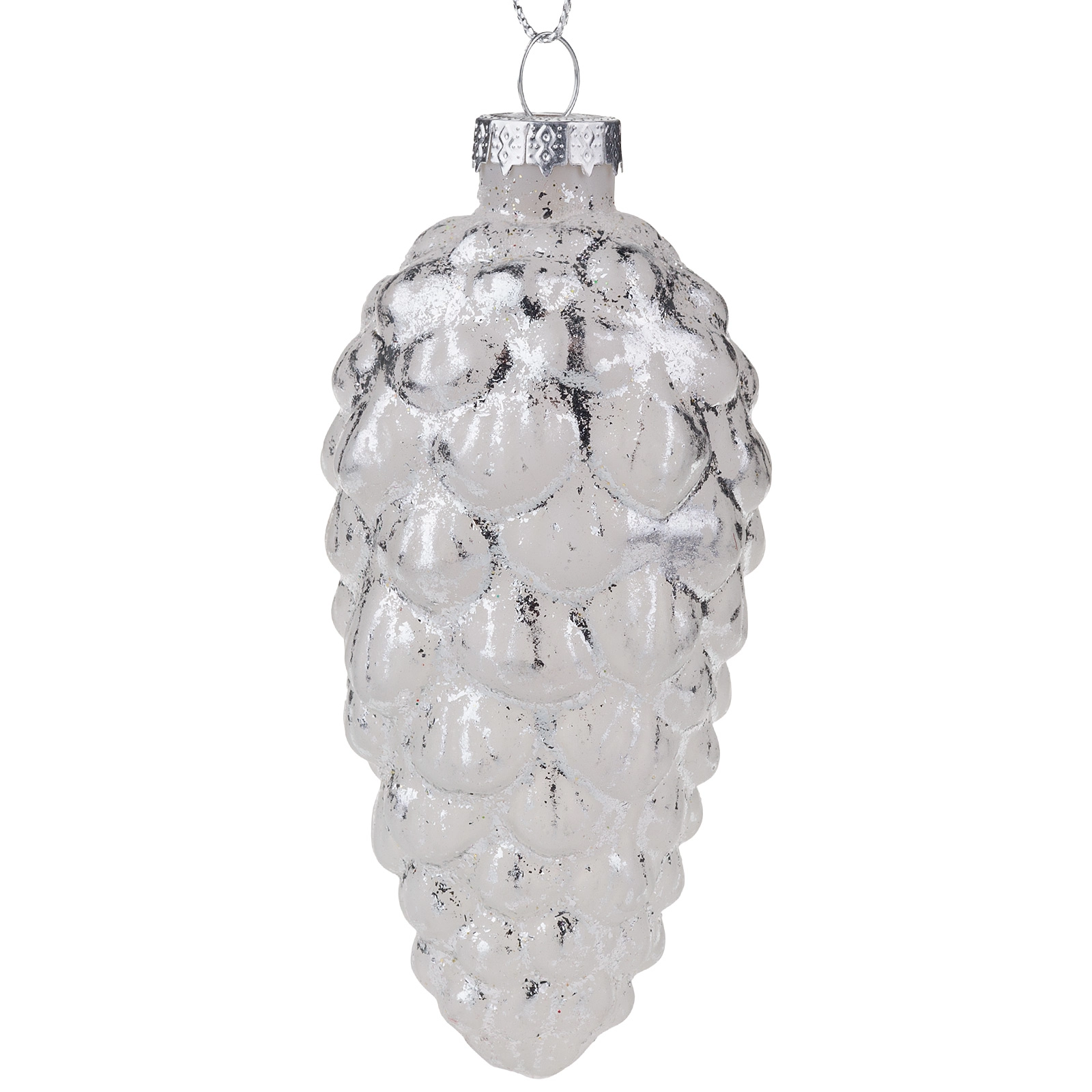 Елочная игрушка "Шишка" (стекло), 5xH10,5 см Белый-серебряный