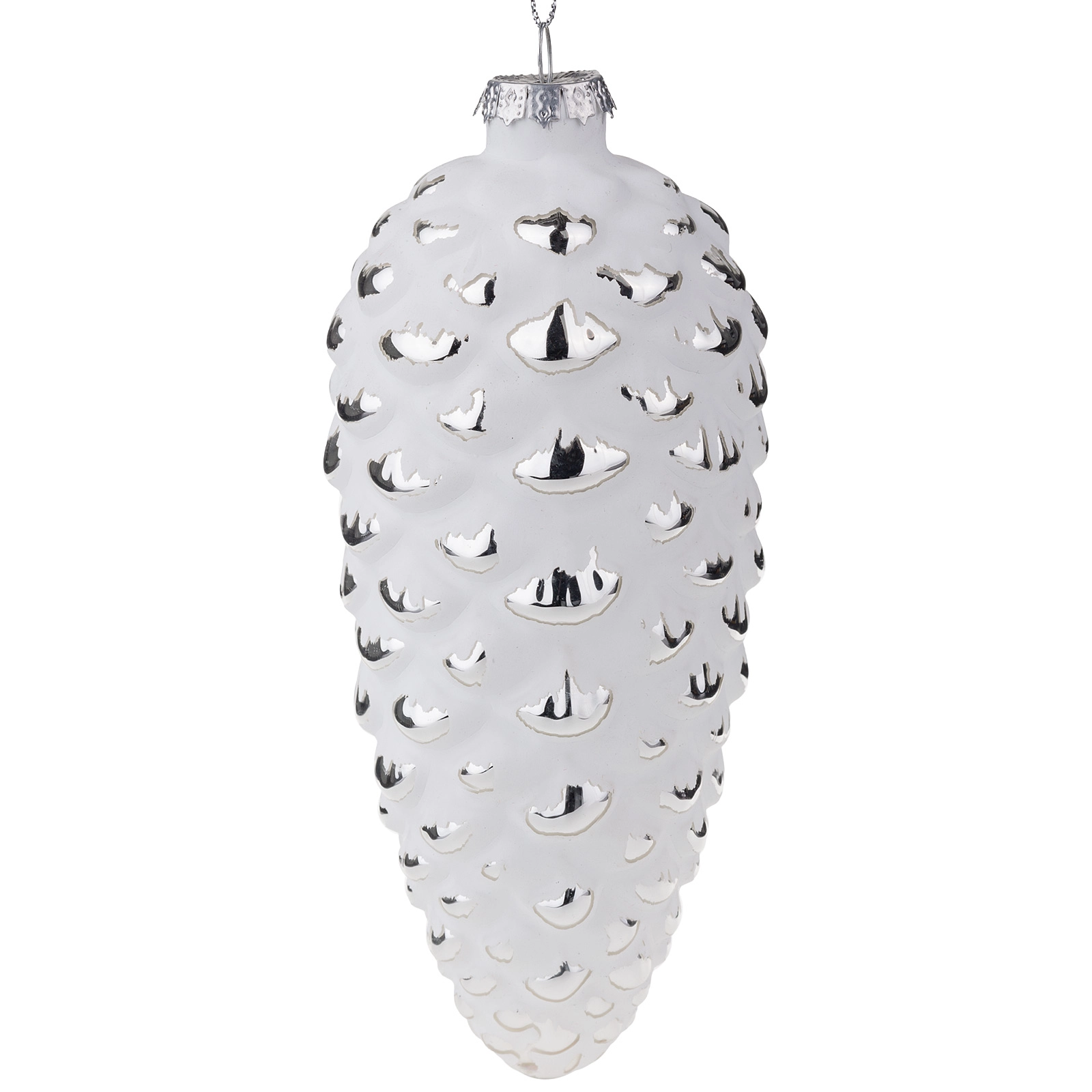 Елочная игрушка "Шишка" (стекло), 7xH15,5 см Белый-серебряный