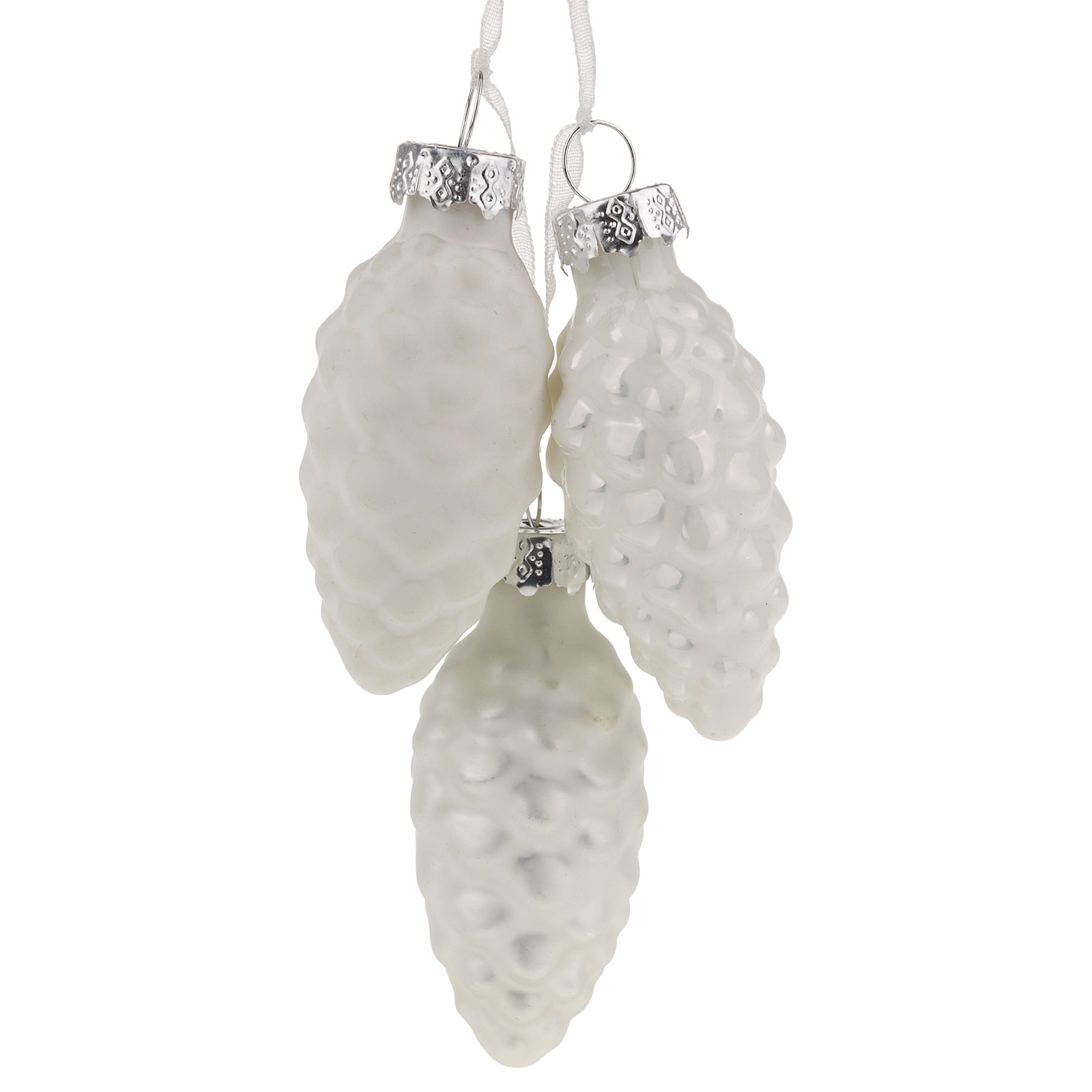 Елочная игрушка "Шишка в связке" (стекло), D2,5xH5 см Белый