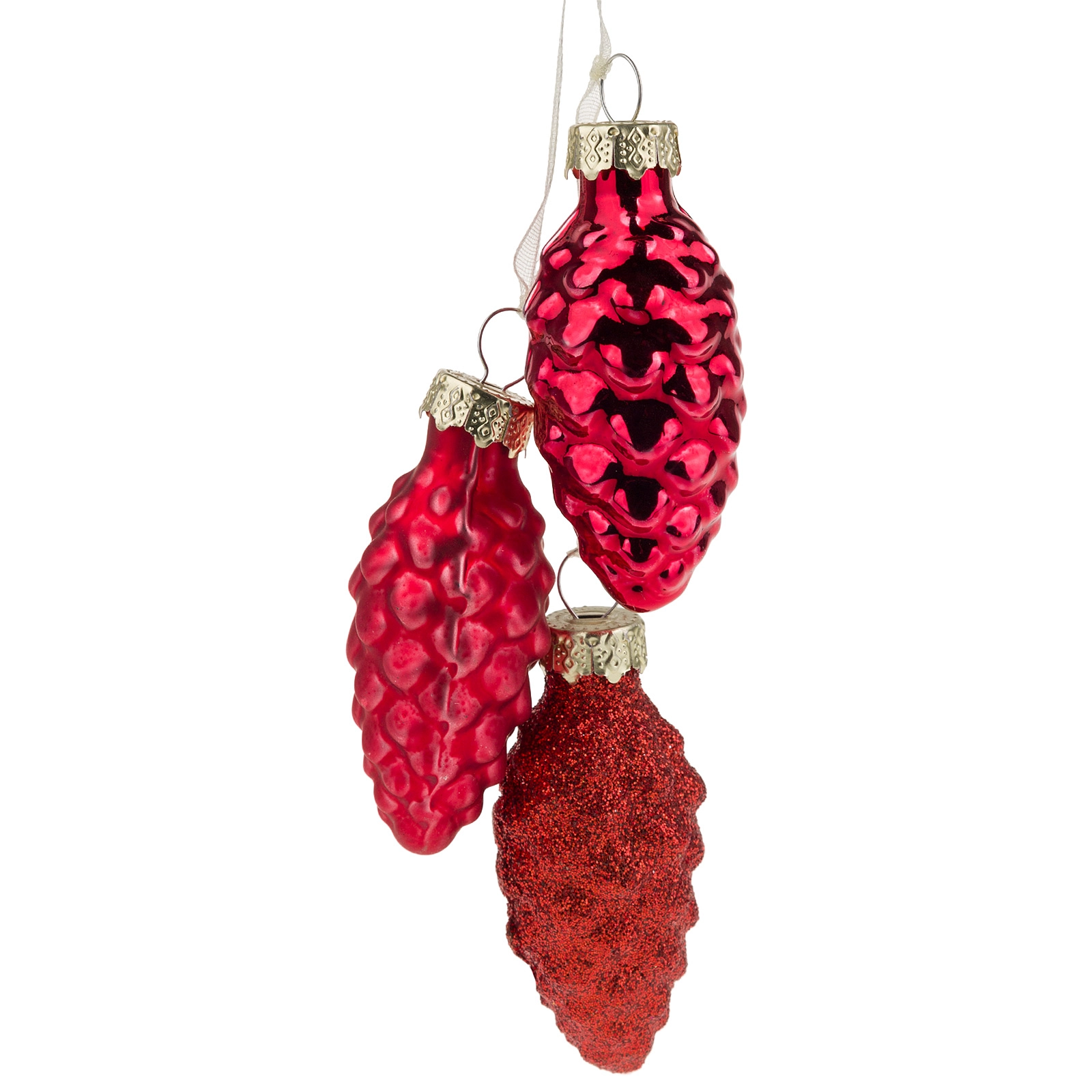 Елочная игрушка "Шишка в связке" (стекло), D2,5xH5 см Красный