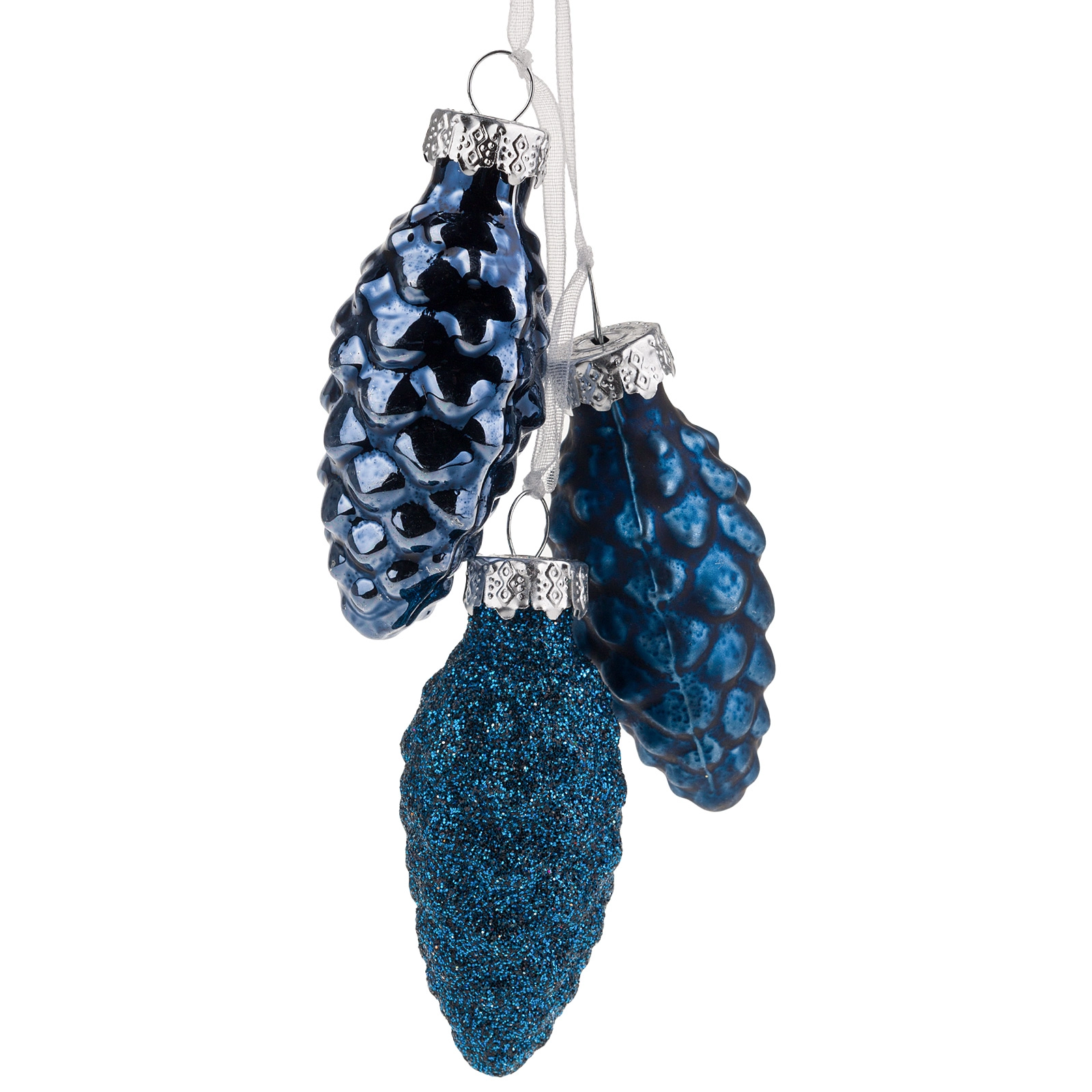 Елочная игрушка "Шишка в связке" (стекло), D2,5xH5 см Синий