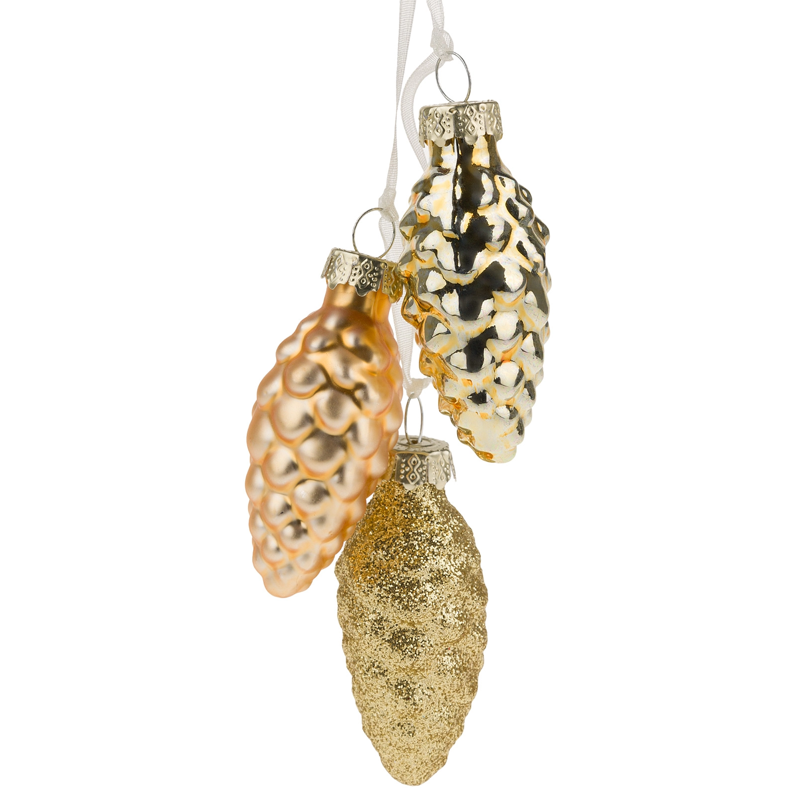 Елочная игрушка "Шишка в связке" (стекло), D2,5xH5 см Золотой