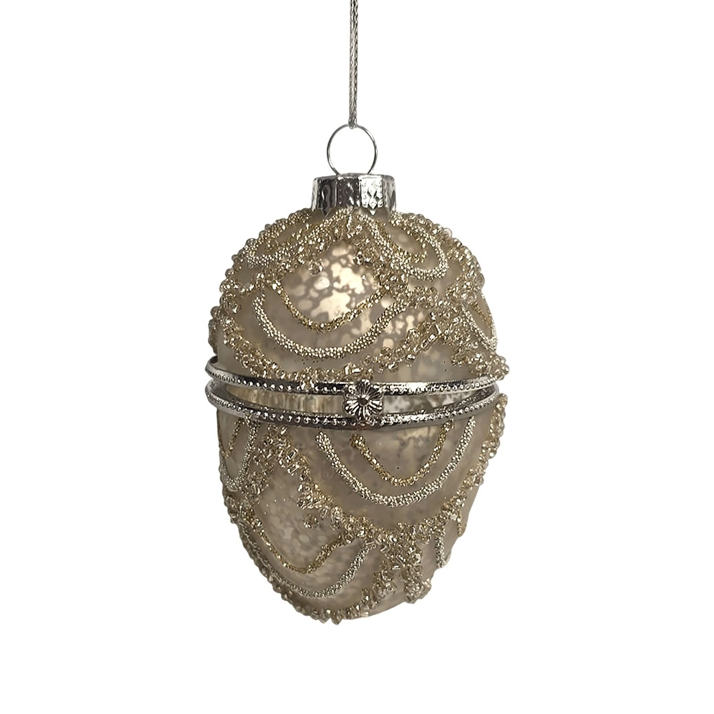 Елочная игрушка "Олива" (стекло), D6xH13 см Серебряный