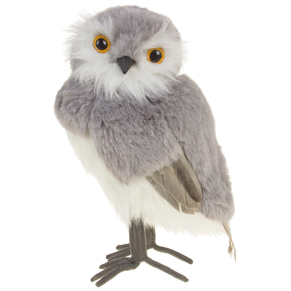 Фигурка "Сова" (пластик, иск.мех, перо), 16х13хН25 см Серый