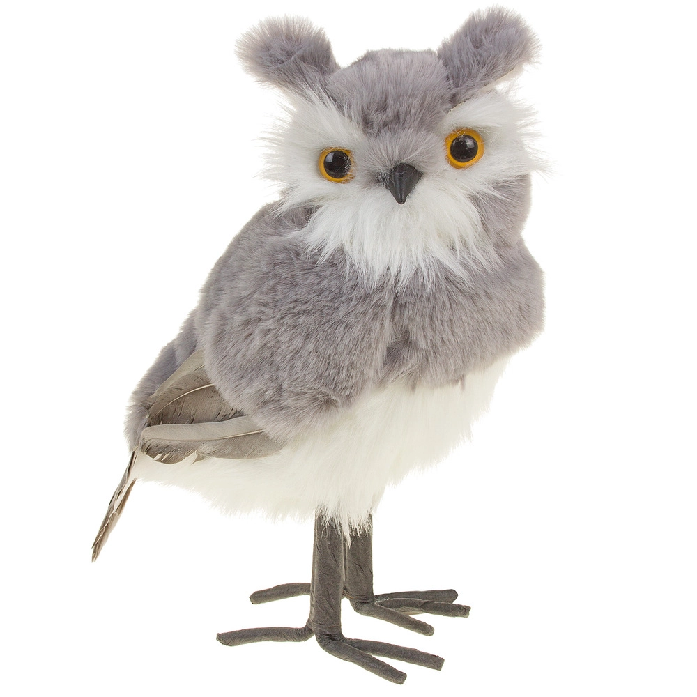 Фигурка "Сова" (пластик, иск.мех, перо), 17х13хН27 см Серый