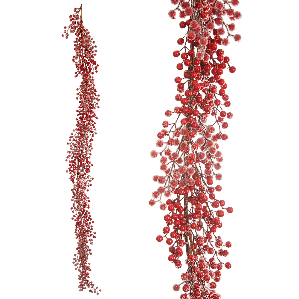 Гирлянда ягодная заиндевевшая искусственная (пластик), H150 см Красный