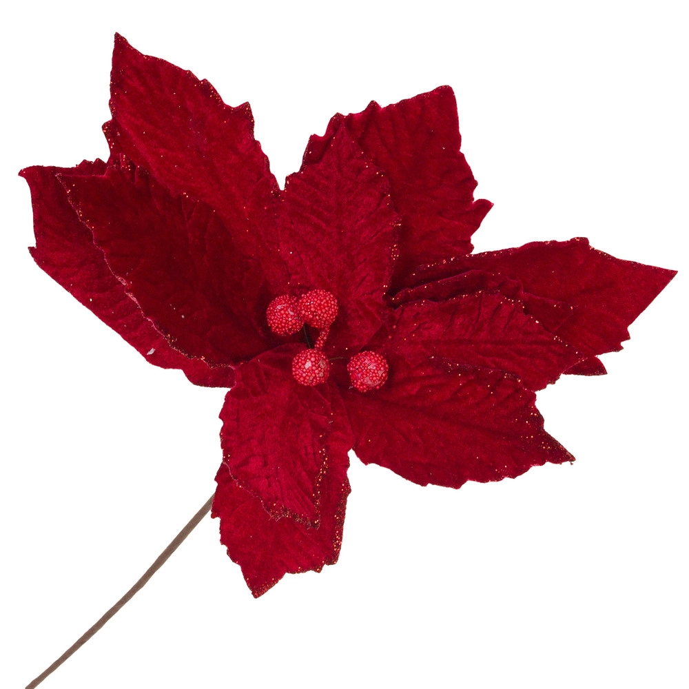 Цветок искусственный "Пуансеттия" (ткань), H60 см Красный