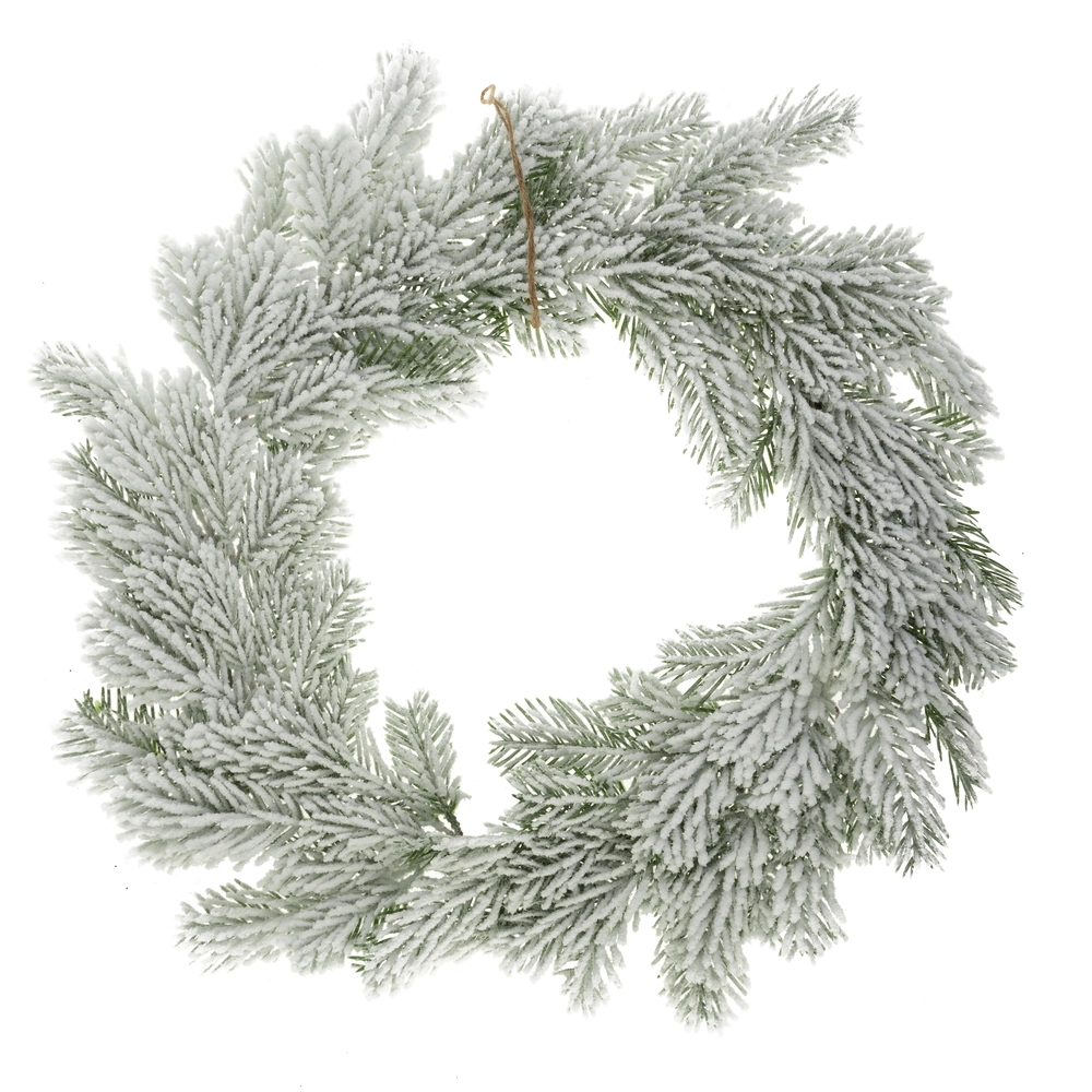 Венок искусственный еловый заснеженный (пластик), D53 см Зеленый