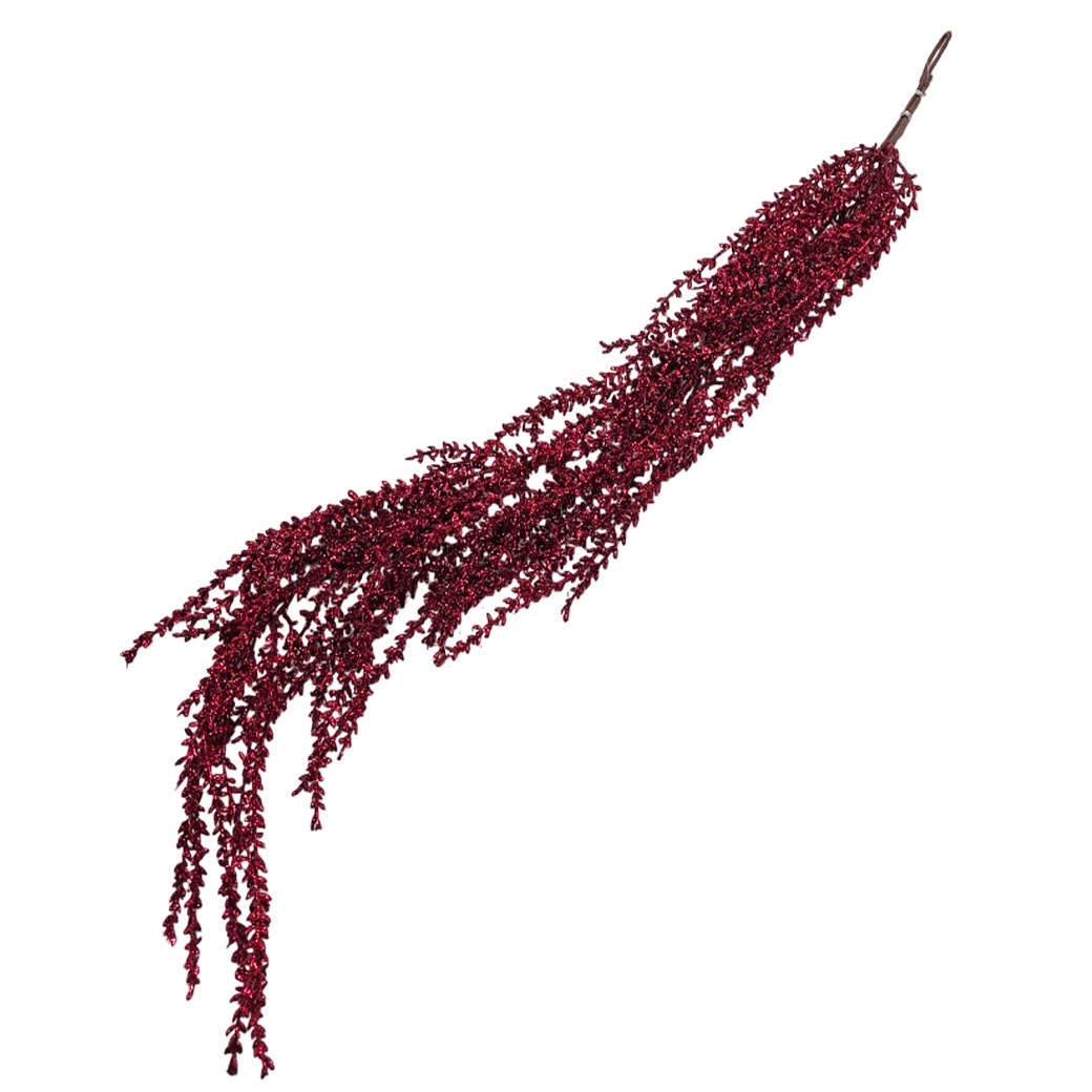 Ветка искусственная "Амарант" (пластик), H96 см, с глиттером Красный
