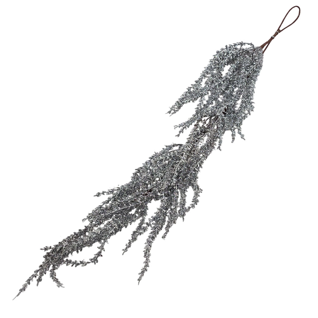 Ветка искусственная "Амарант" (пластик), H96 см, с глиттером Серебряный