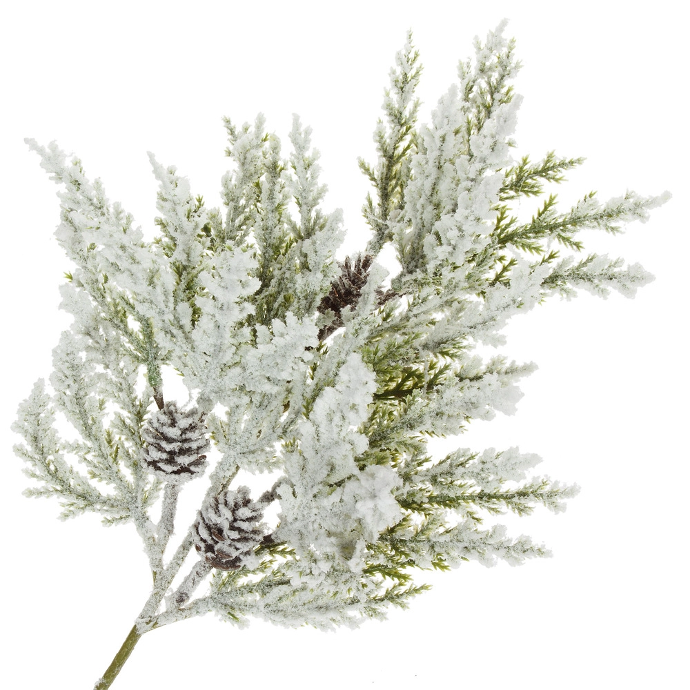 Ветка искусственная еловая заснеженная (пластик), H36 см Зеленый