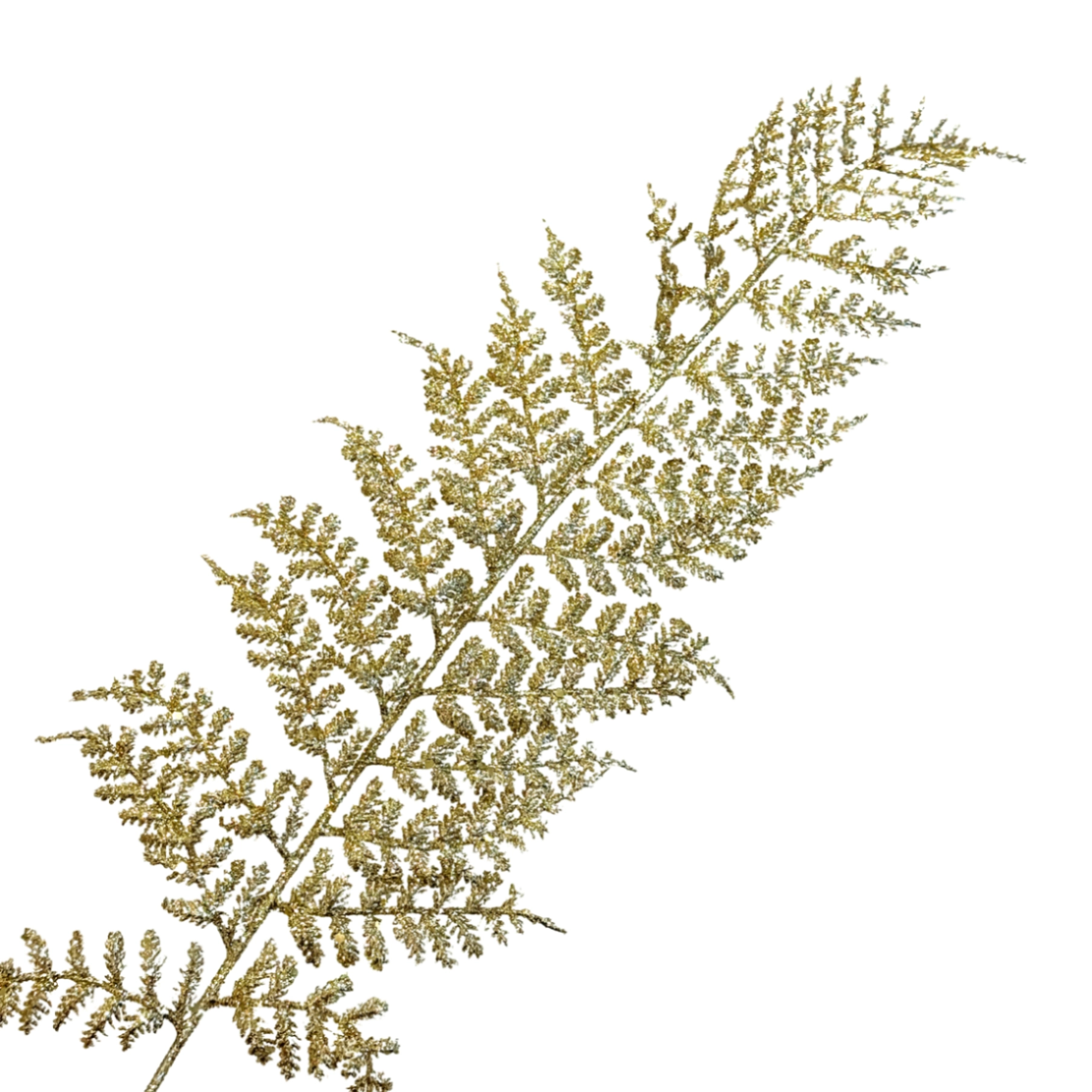 Ветка искусственная "Папоротник" (пластик), H21 см, с глиттером Золотой