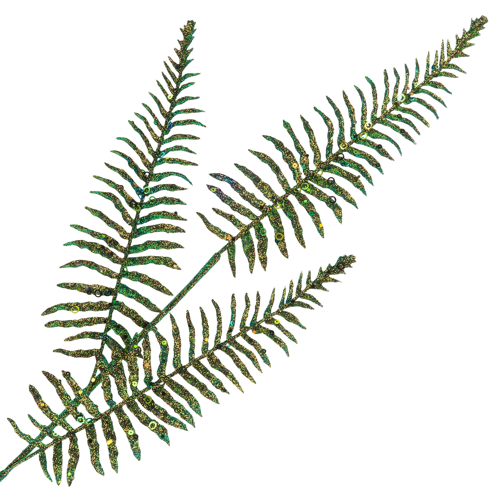 Ветка искусственная "Папоротник" (пластик), H71 см, с глиттером Зеленый