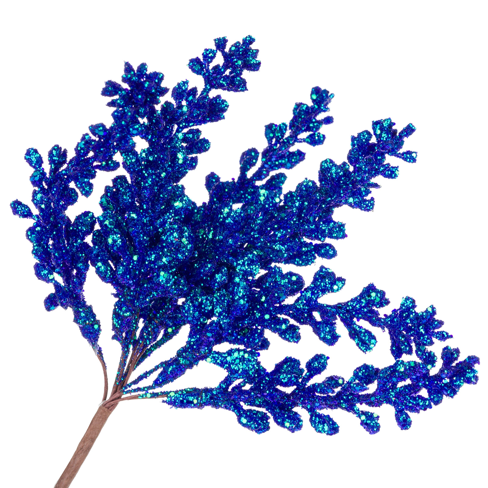 Ветка искусственная (пластик), H16 см, с глиттером Синий