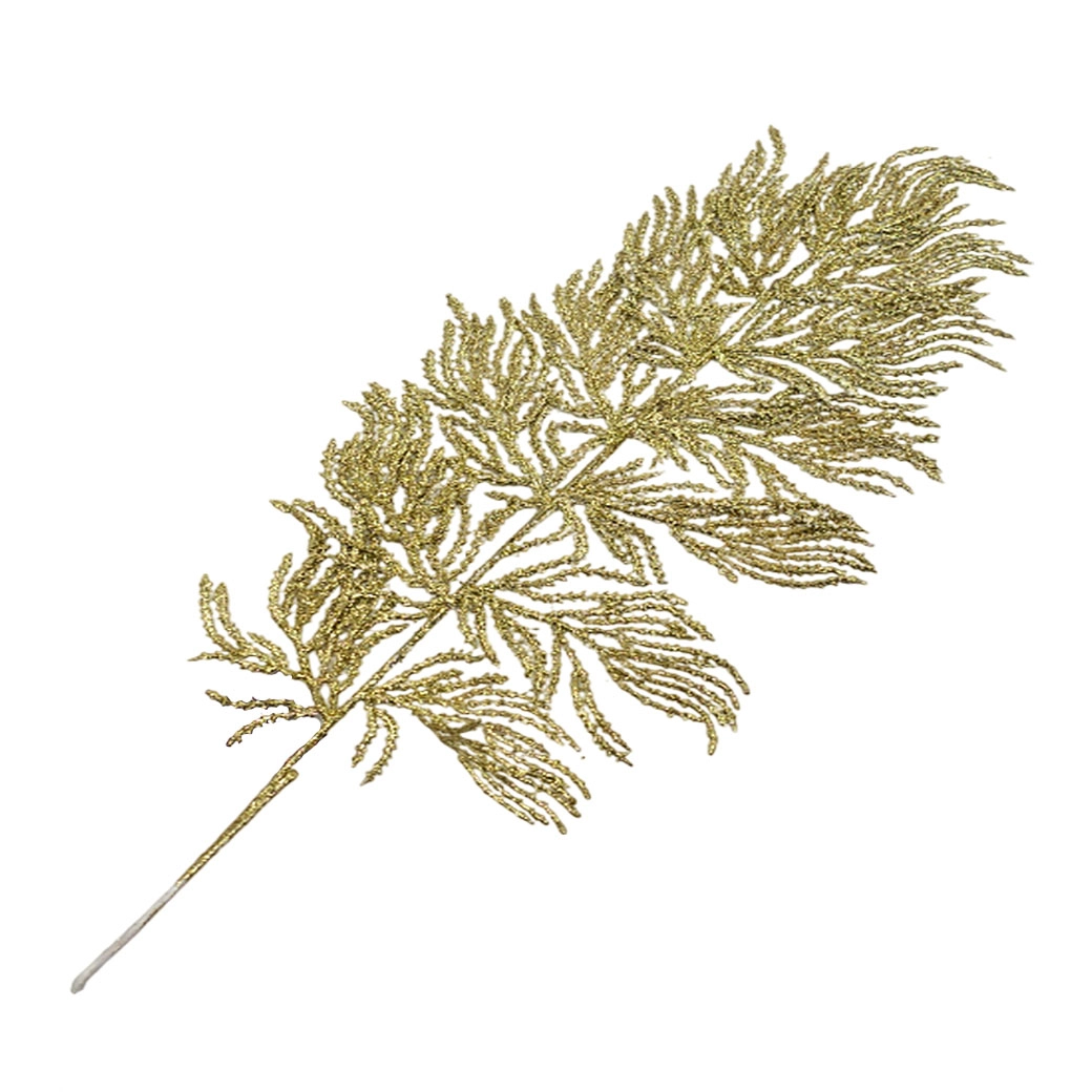 Ветка искусственная (пластик), H70 см, с глиттером Золотой