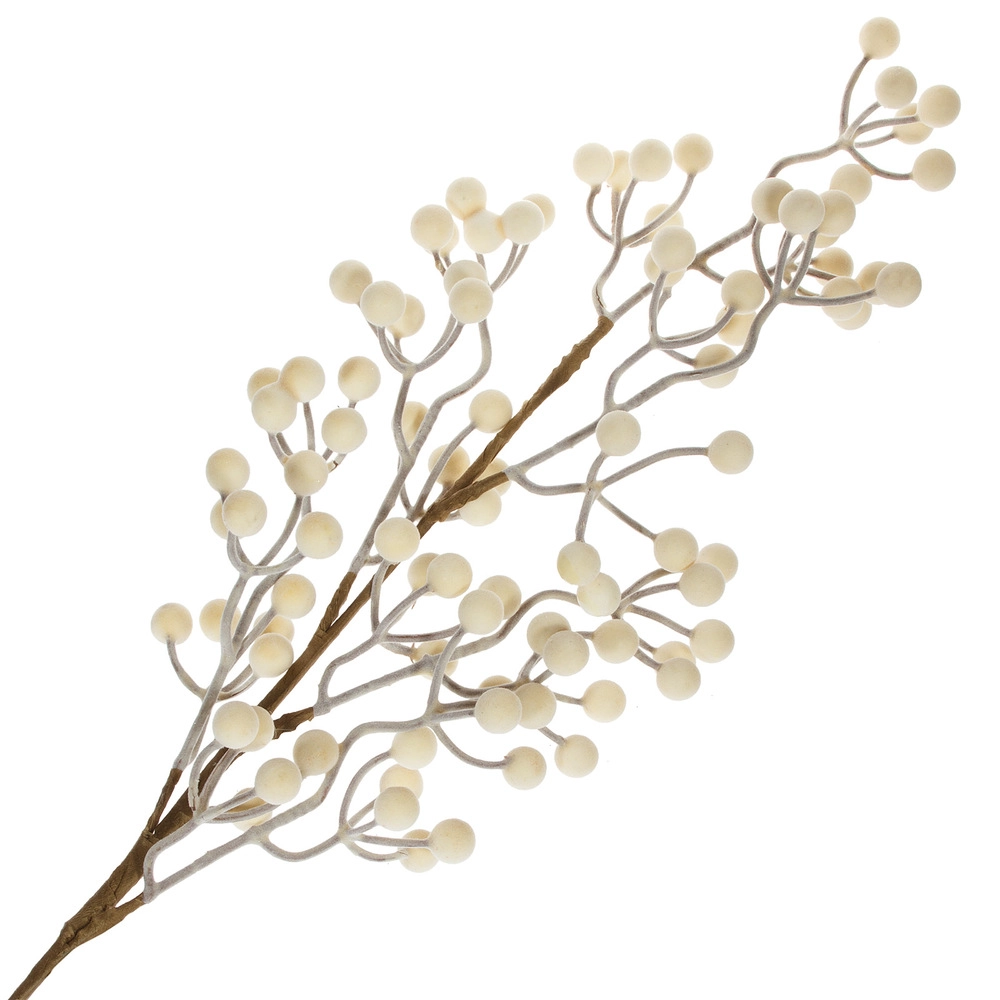Ветка искусственная ягодная "Калина" (пластик, флок), H66 см Белый