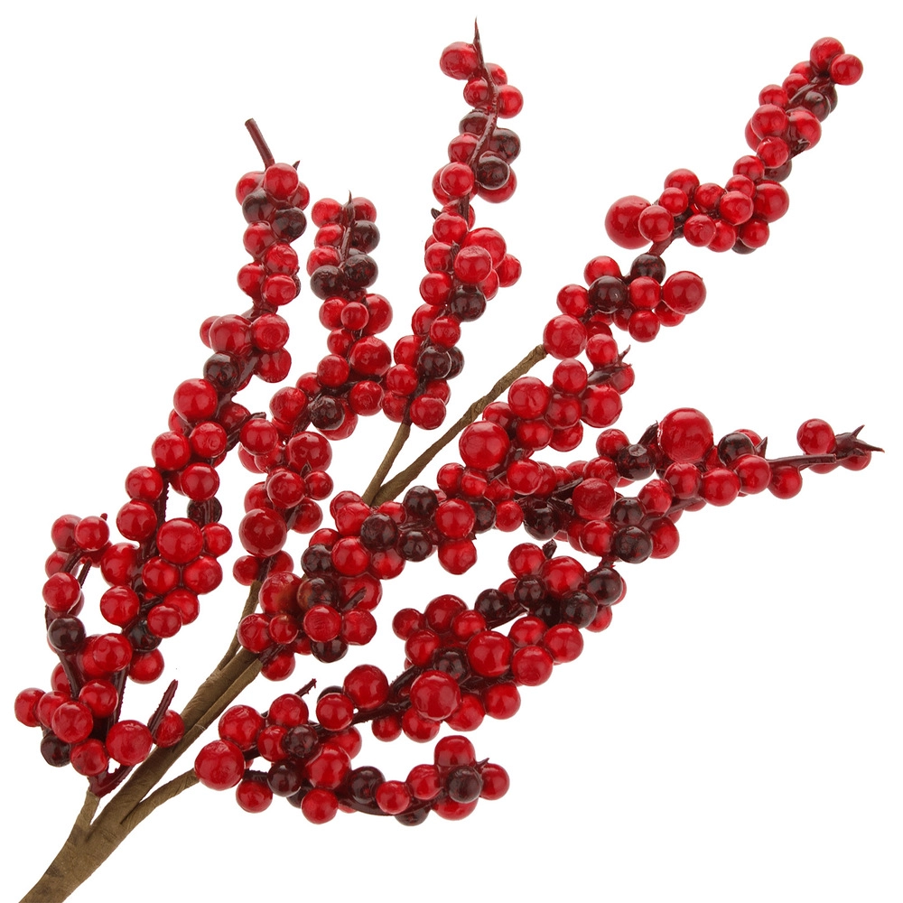 Ветка искусственная ягодная (пластик), H40 см Красный