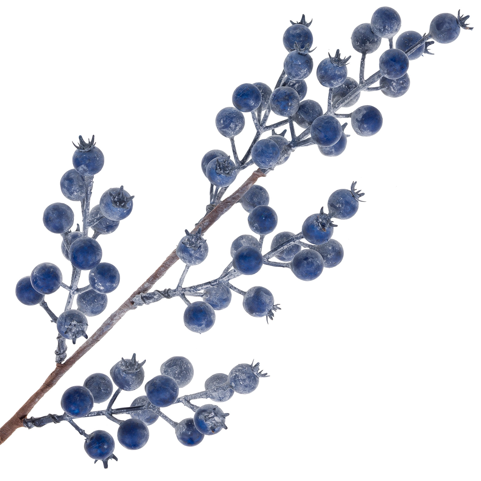 Ветка искусственная ягодная (пластик), H47 см Синий