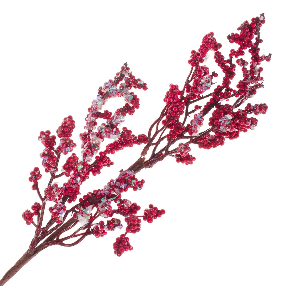 Ветка искусственная ягодная (пластик), H53 см Красный