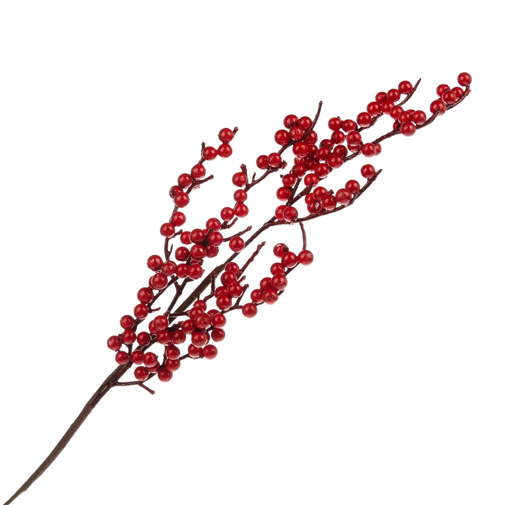 Ветка искусственная ягодная (пластик), H61 см Красный
