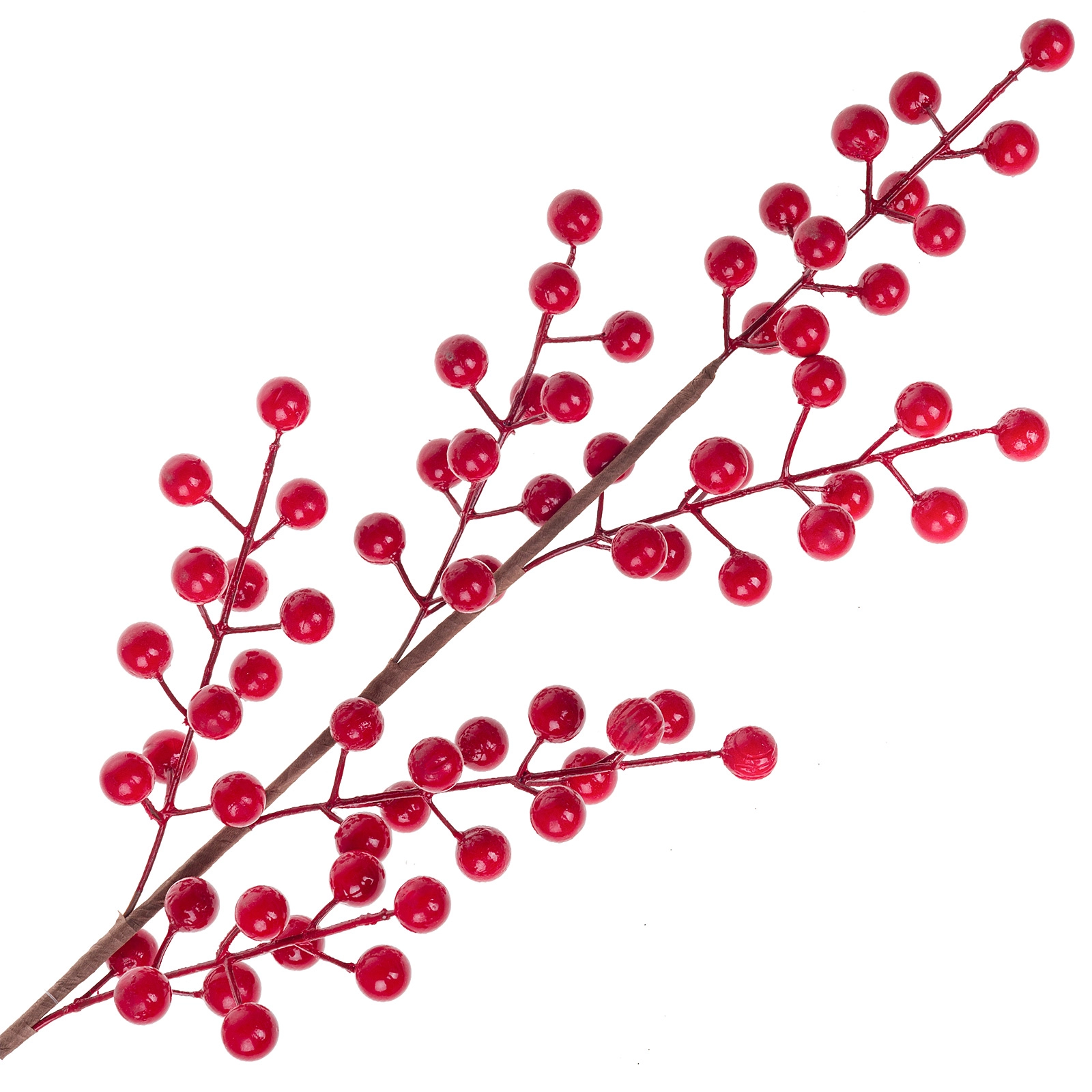 Ветка искусственная ягодная (пластик), H64 см Красный