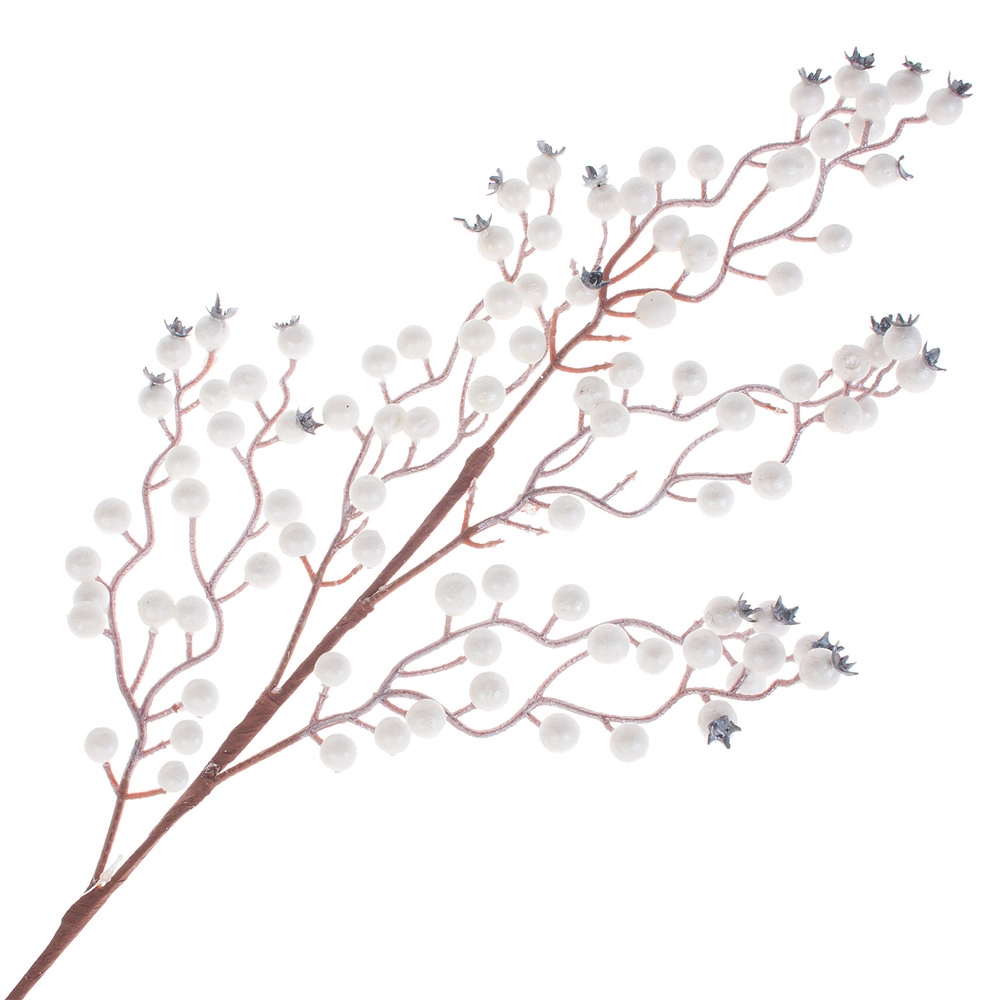 Ветка искусственная ягодная (пластик), H70 см Белый