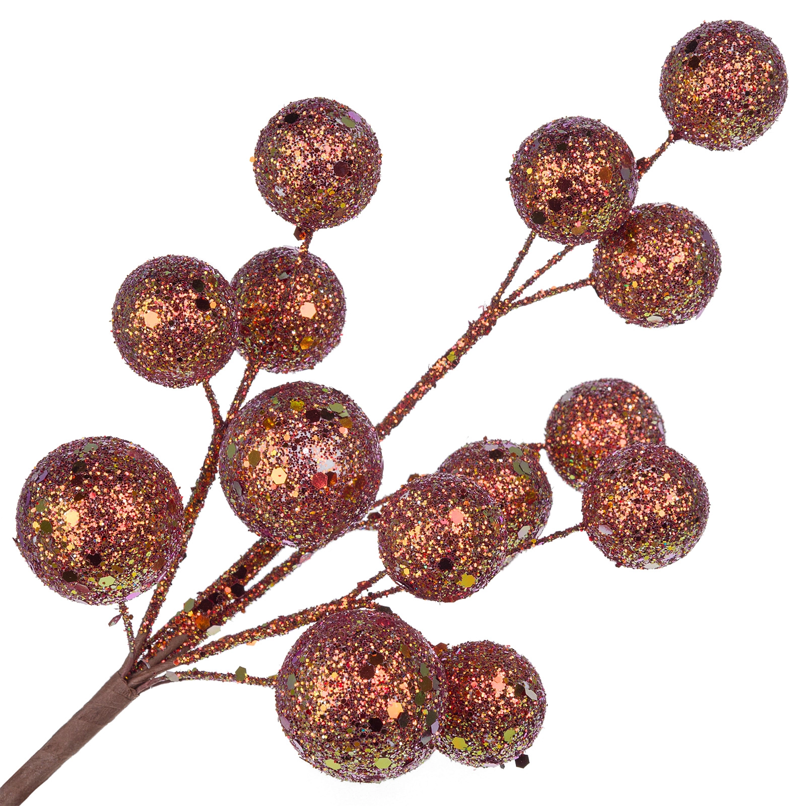 Ветка искусственная ягодная (пластик), H71 см, с глиттером Коричневый