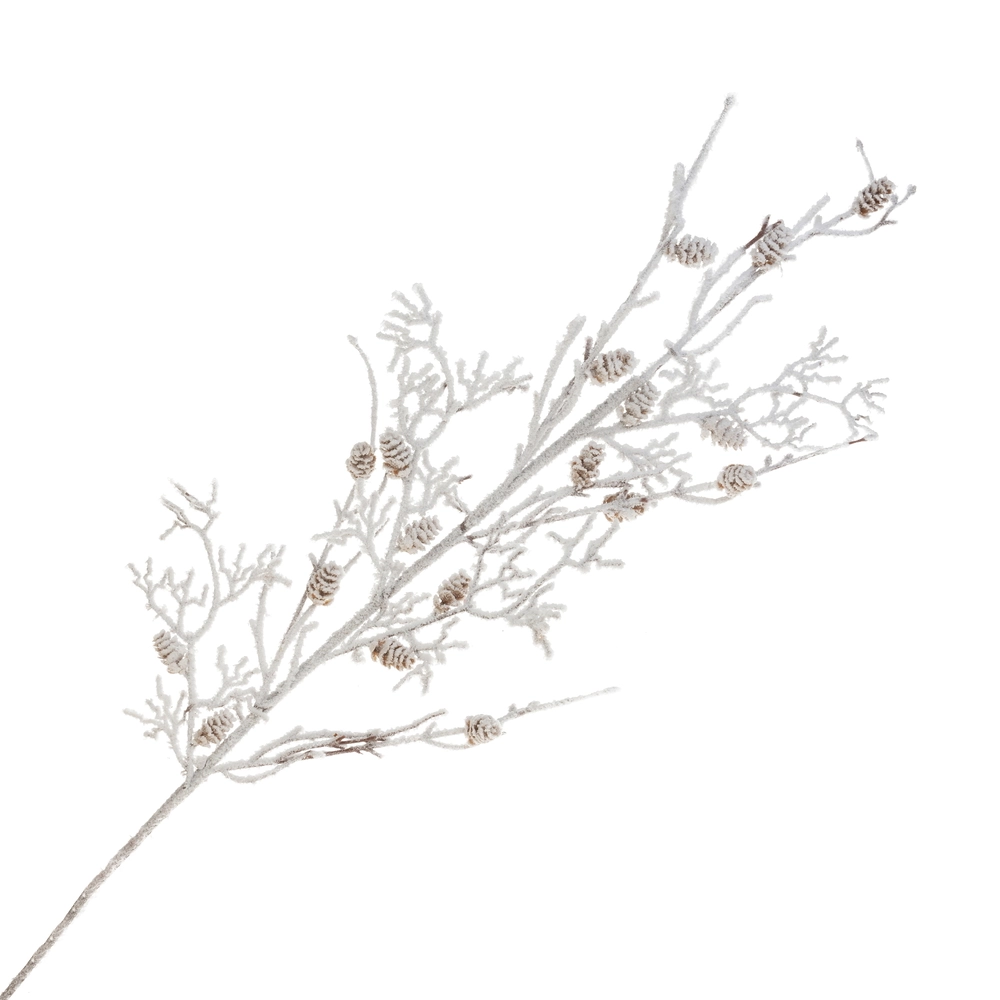 Ветка искусственная заснеженная с шишками (пластик), 25xH96 см Белый