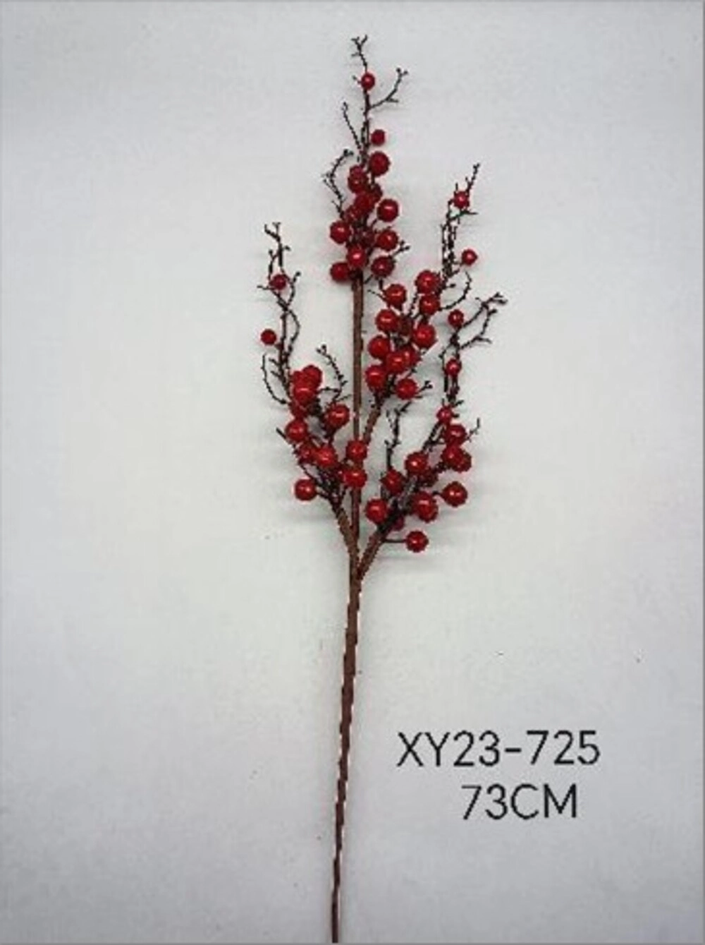 Ветка ягодная искусственная (пластик), Н73 см Красный