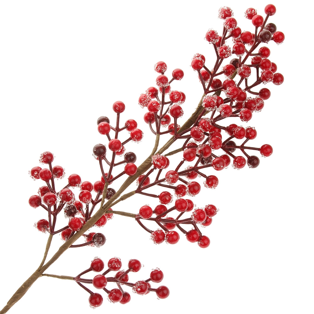 Ветка ягодная заиндевевшая искусственная (пластик), Н76 см Красный