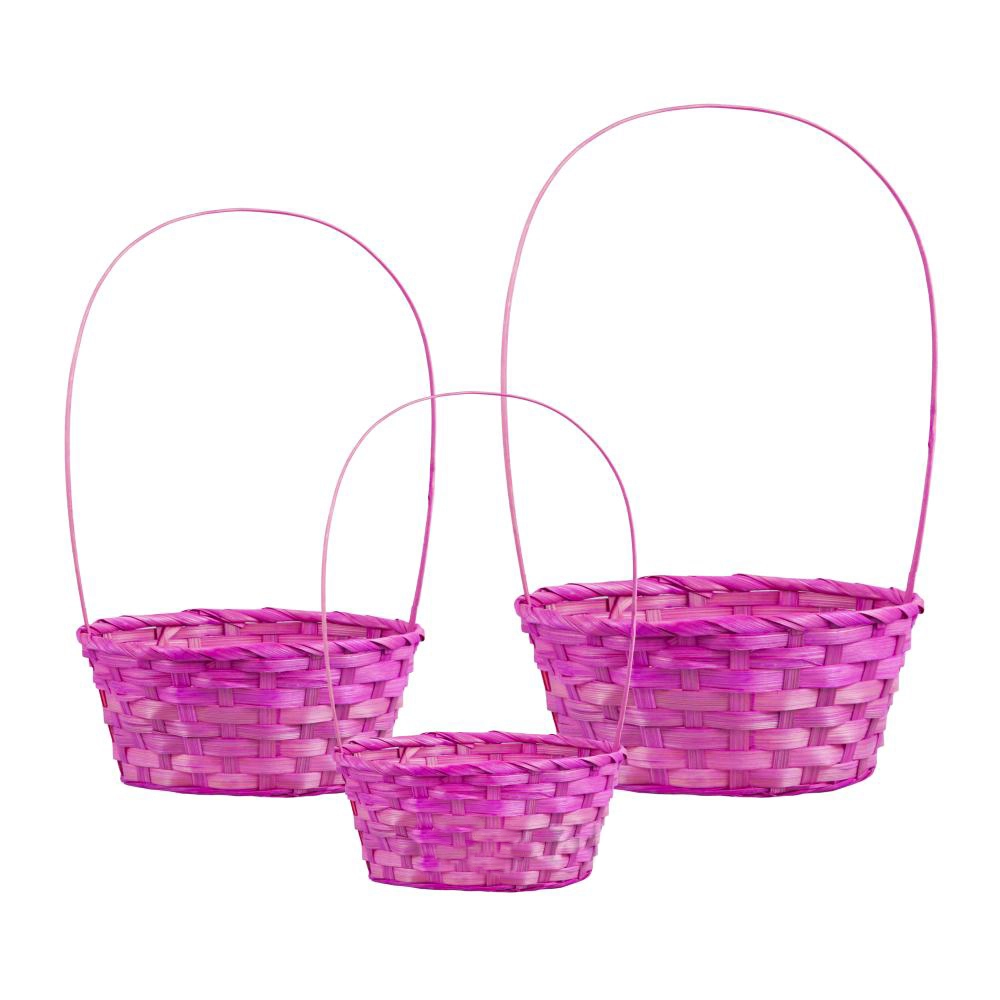 Корзина плетеная (бамбук), 27x21xH10/38 см - 22x18xH10/34 см, набор (3 шт) Розовый