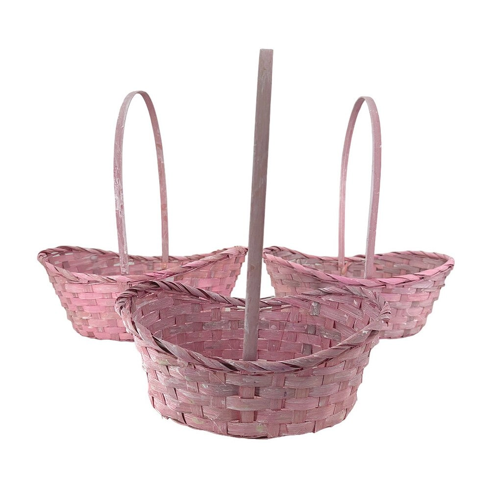 Корзина плетеная (бамбук), 33x24xH13/42 см - 26x19xH10,5/34 см, набор (3 шт) Розовый