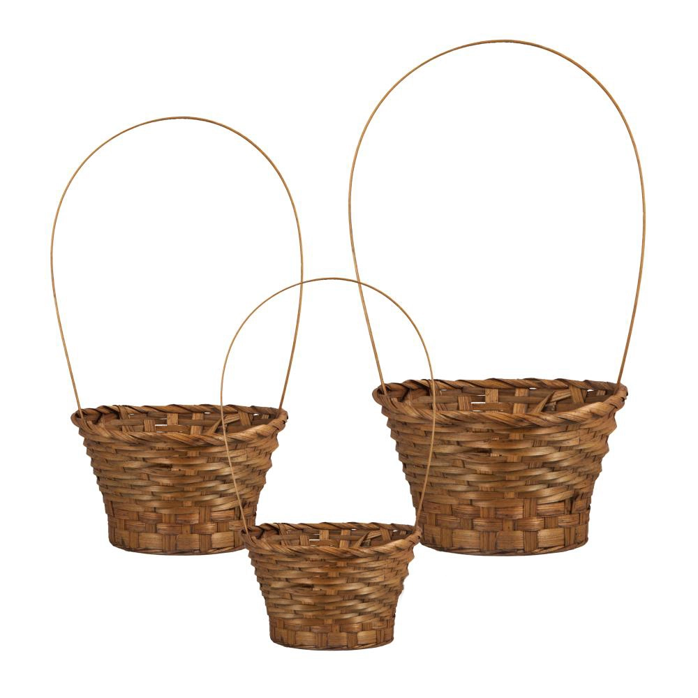 Корзина плетеная (бамбук), D26xH13/38 см - D20xH11/35 см, набор (3 шт) Коричневый